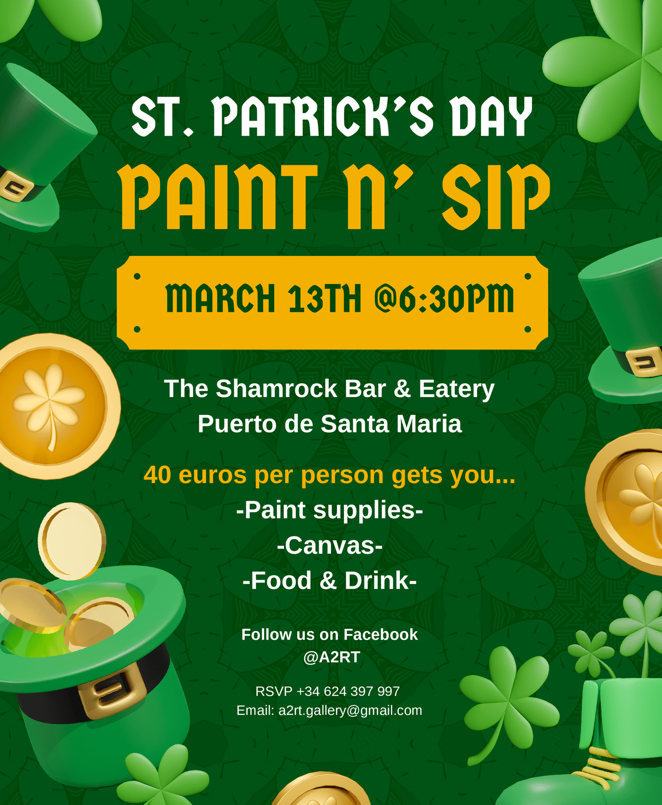 Highlights for March: 🎨 St. Patrick´s Day Paint and Sip – March 13, bring your creativity, your friends, and a little Irish mischief.