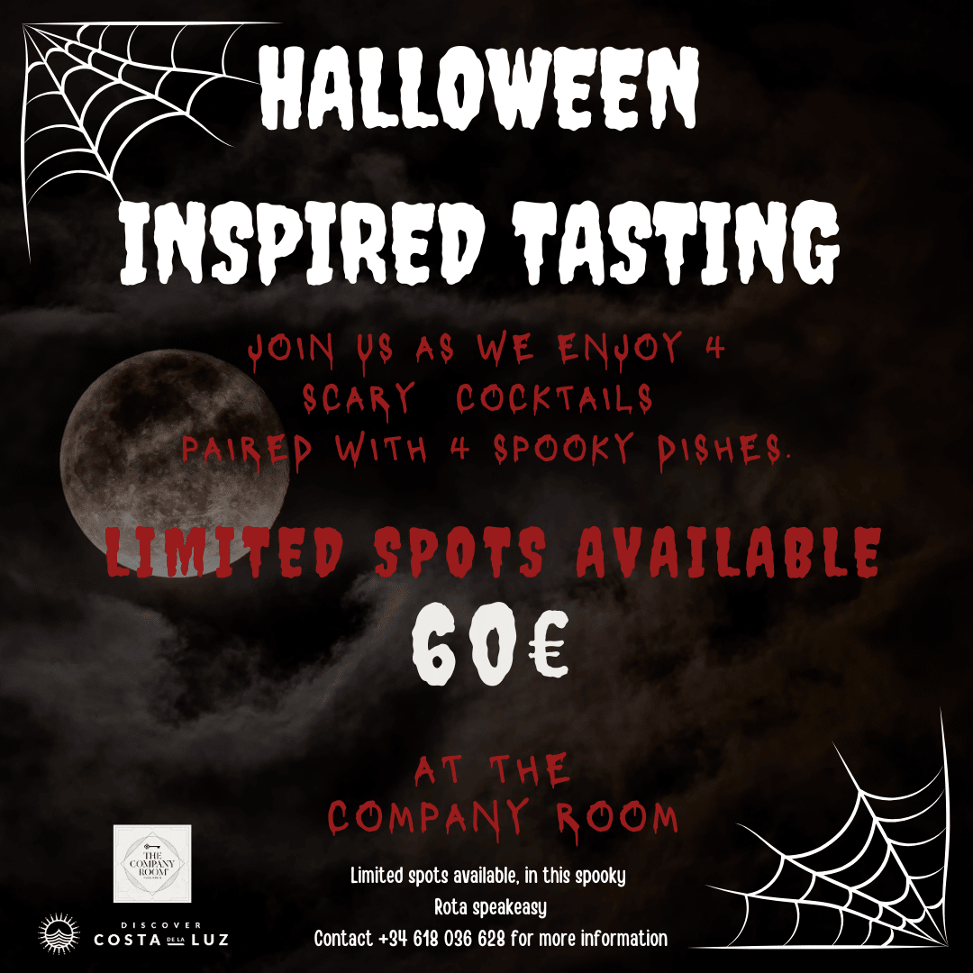 ✨ What to Expect: 🕸️ Taste 4 eerie and enchanting cocktails, each crafted with a spooky Halloween twist. 🍽 Enjoy a delicious appetizer paired with each drink, designed to bring out the bold, mysterious flavors.